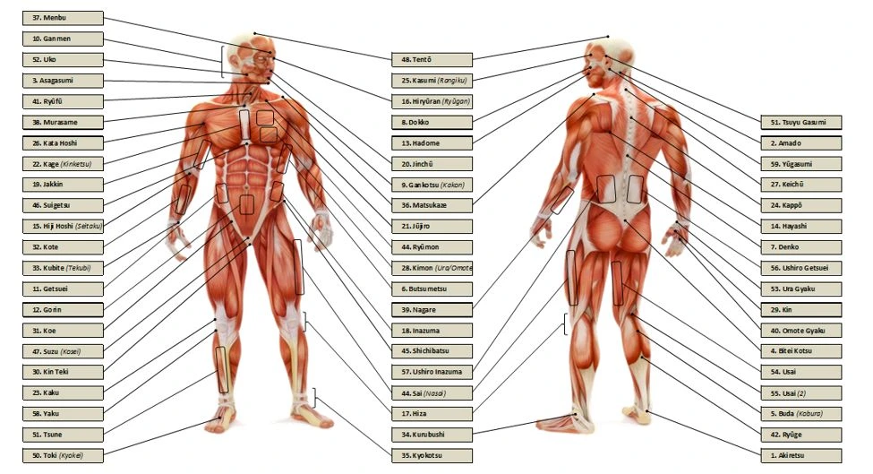 A kyūsho szó a test stratégiai pontjaira utal, olyan területekre, ahol: